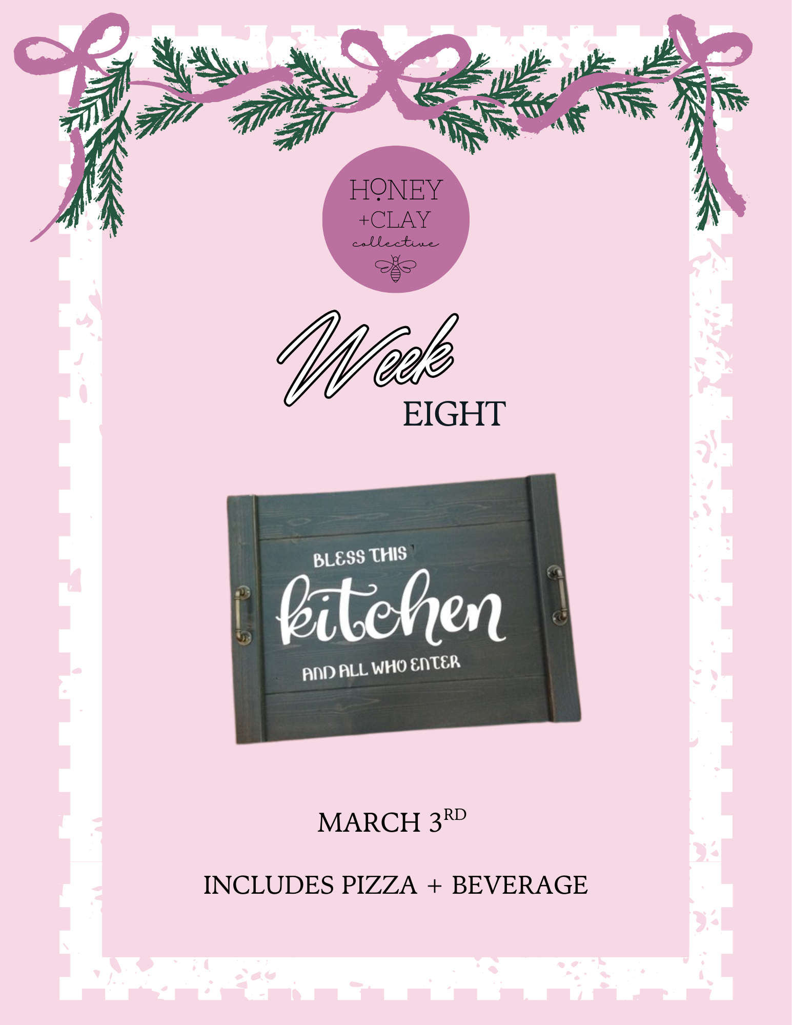 Our 9‑week course features a new craft project each week, plus pizza and a beverage.